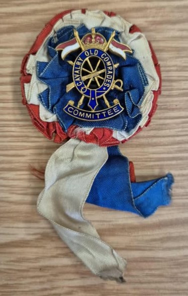 Another surprise addition was a Combined Cavalry Old Comrades Association (CCOCA) Rosette, indicating that in later life he was on the committee and helped to organise the Annual Cavalry Memorial Parade. This rare survival provides a link to today’s regimental representatives on the CCOCA committee who continue to organise the Cavalry Memorial today.